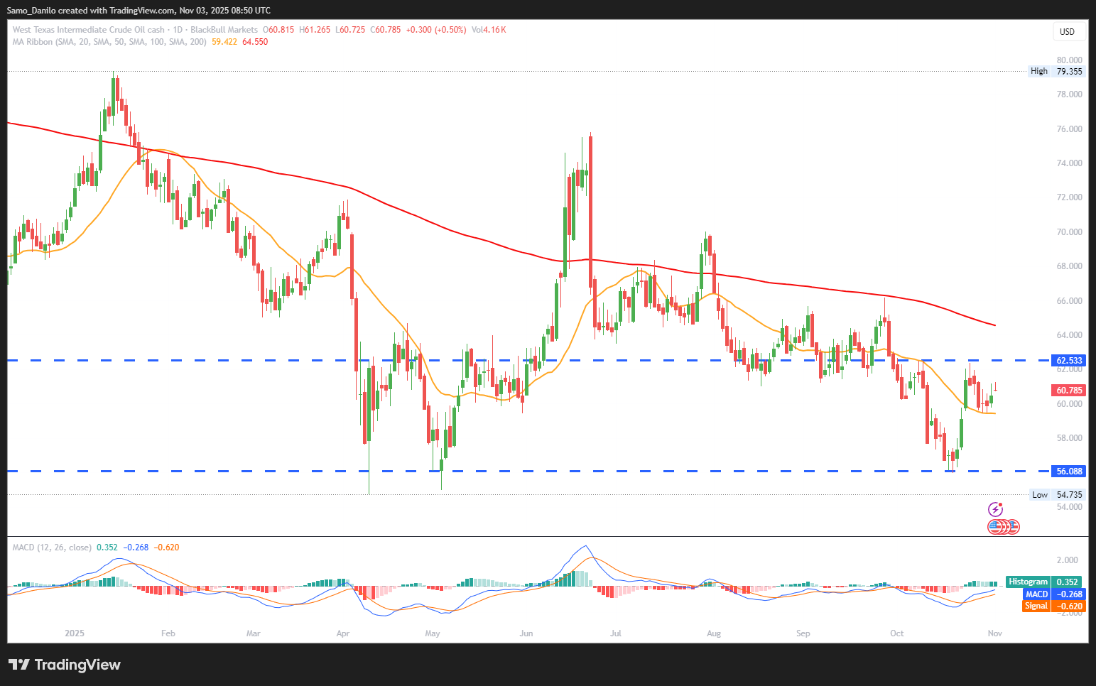 Closing statement: WTI crude remains supported by geopolitical tensions and disciplined OPEC+ policy, even as demand-side uncertainty from China lingers. The combination of restricted Russian supply and steady OPEC+ output could provide a mildly bullish bias in the near term.