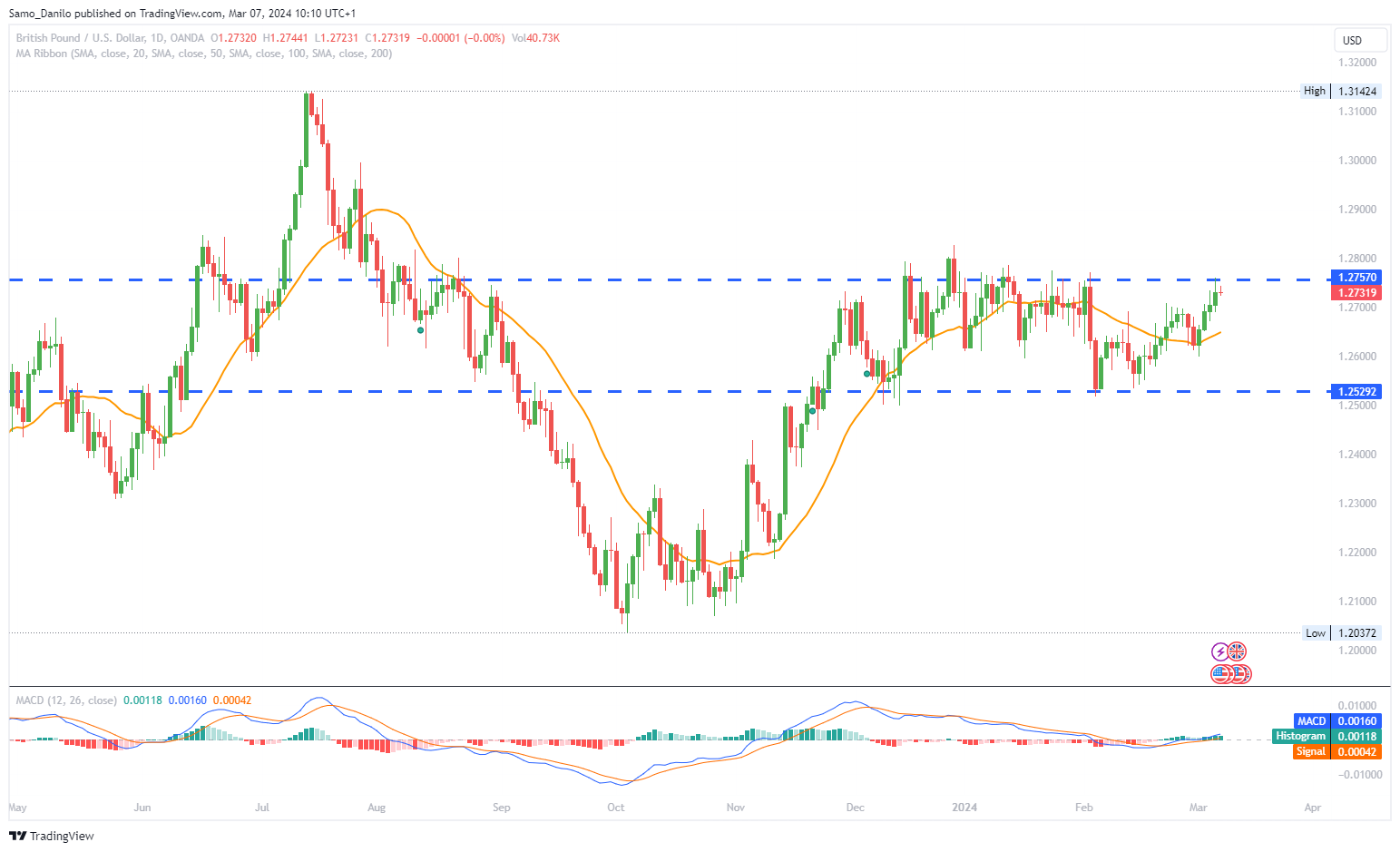 - Breaking 1.2700 Barrier: The GBP/USD pair successfully breached the 1.2700 barrier and is currently trading around 1.2735 during the Asian session on Thursday.