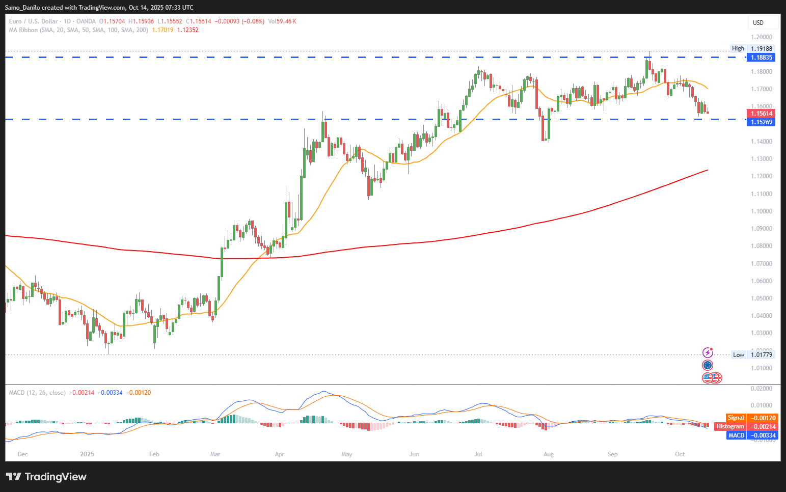 - EUR/USD Price: The EUR/USD pair edged slightly higher to 1.1580 after suffering a 0.5% loss in the previous session. The modest rebound indicates short-term stabilization, though overall sentiment remains cautious.