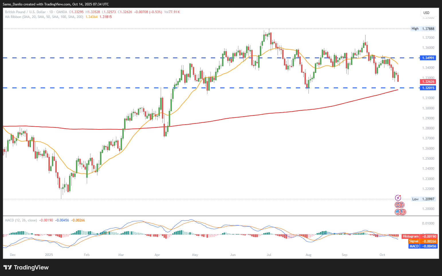 - GBP/USD Price: The GBP/USD pair fell below 1.3300 during the European session, marking continued weakness in the pound. Selling momentum reflects persistent bearish sentiment amid soft domestic data and market caution.