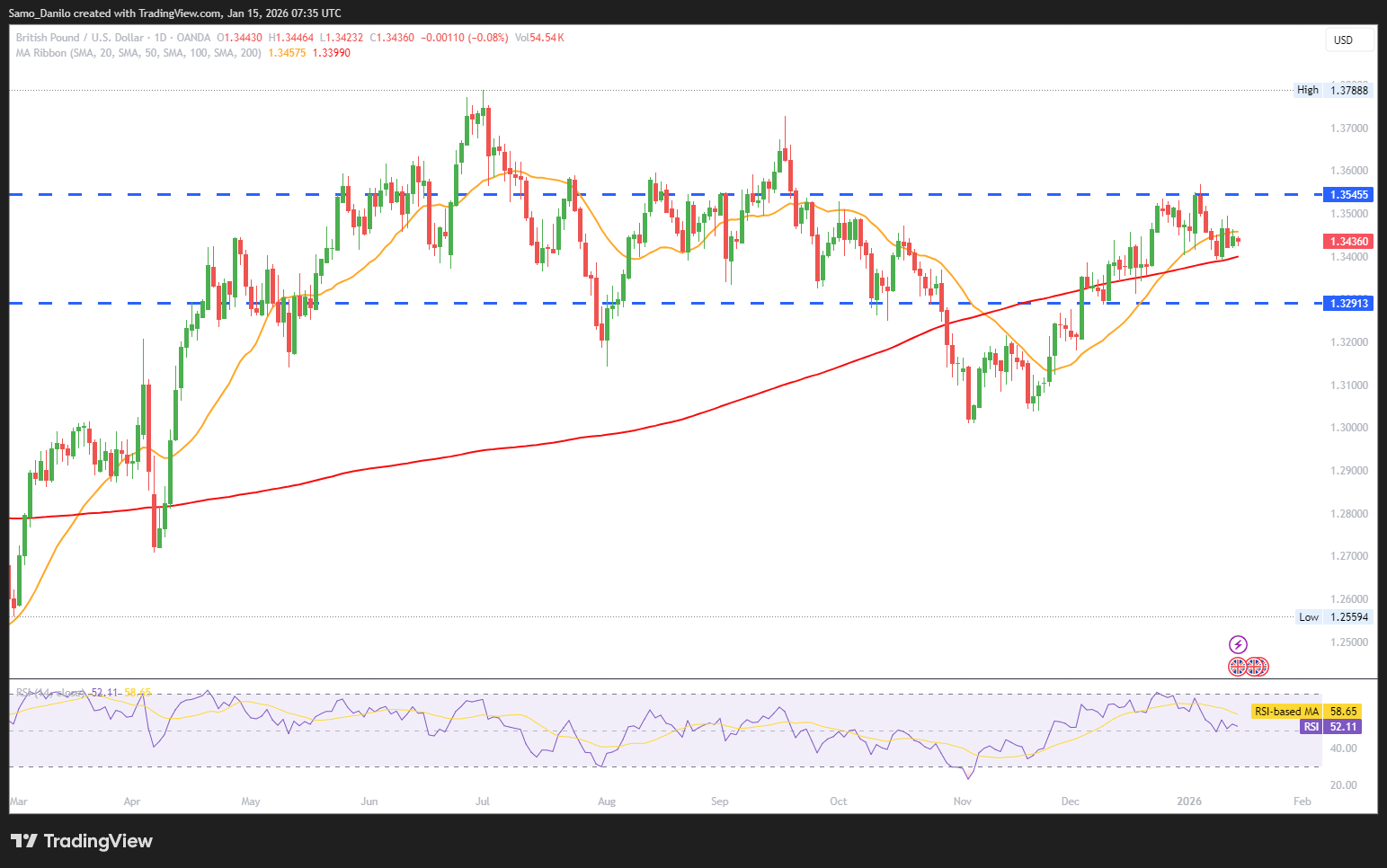- GBP/USD Price: GBP/USD is consolidating around 1.3430 for a second session, suggesting a pause after recent moves rather than strong directional conviction.