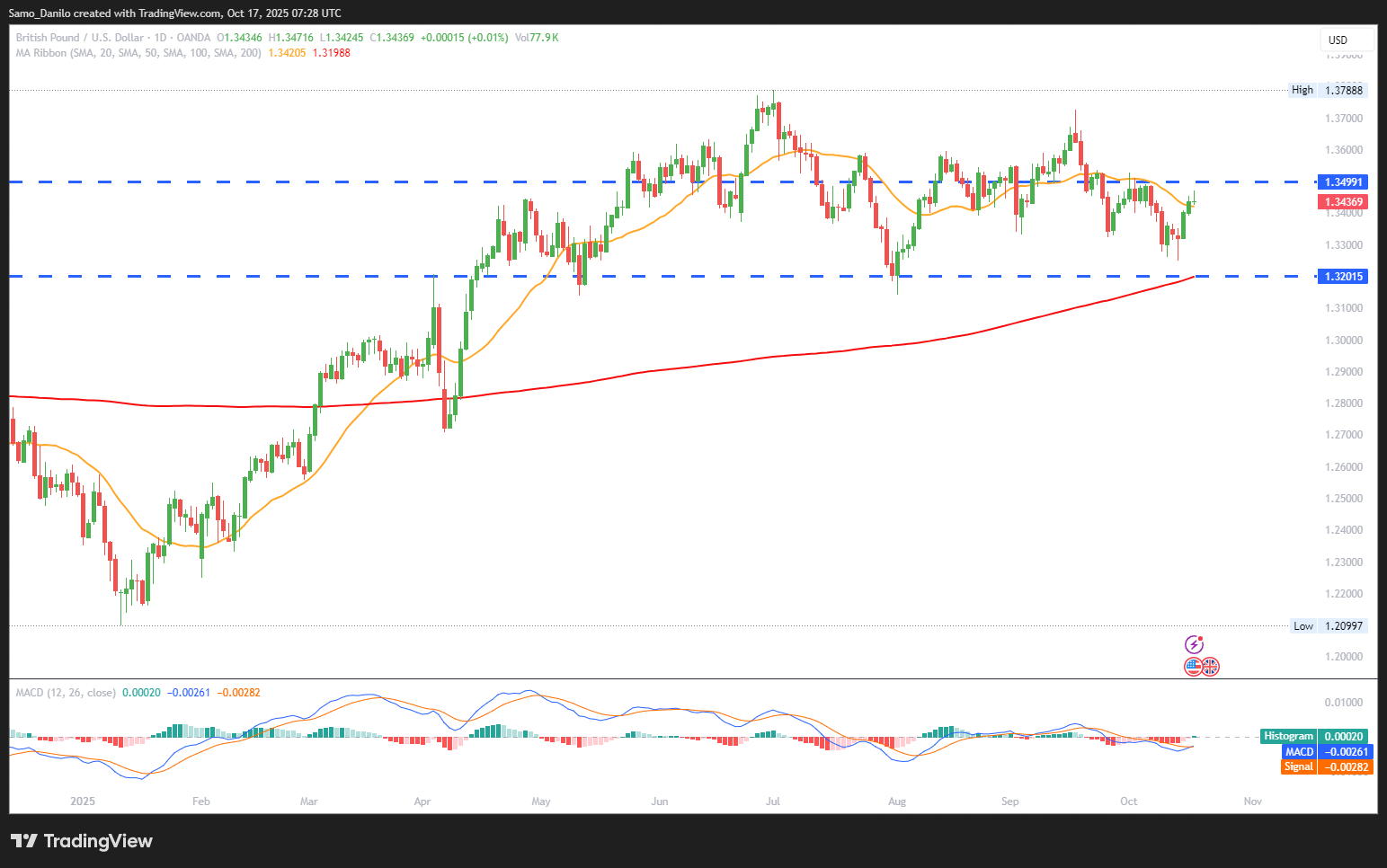 - GBP/USD Price: GBP/USD advances for the third consecutive session on Friday, trading in the mid-1.3400s after rebounding from early-August lows near 1.3250. The sustained recovery reflects improved sentiment and broad U.S. dollar softness.
