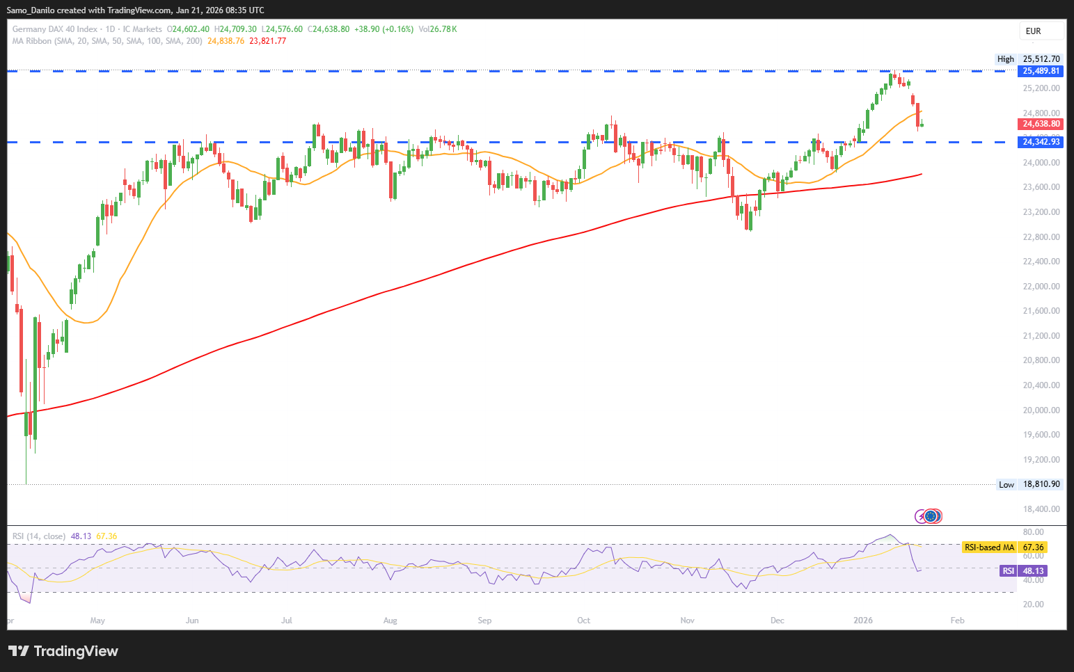 Closing statement: The DAX remains supported by improving German business sentiment and selective corporate upgrades but faces headwinds from escalating US-EU trade tensions. Investors should watch for further developments on tariffs and ECB commentary, which could influence market volatility. The index may consolidate near current levels around 24,600–25,000 unless fresh catalysts emerge.