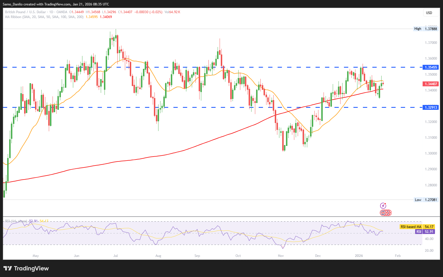 Closing statement: GBP/USD remains mildly bullish, supported by firmer UK inflation and a softer tone in US labor data. As long as the pair holds above the 1.3400–1.3420 support zone, further upside toward 1.3500 remains possible. However, sustained gains may be limited unless US data weakens further or UK inflation continues to surprise to the upside. A renewed hawkish Fed tone could cap upside and trigger a short-term pullback.