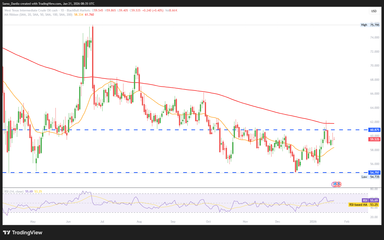 Closing statement: WTI remains supported on supply-side risks, particularly from Kazakhstan outages and tighter enforcement on Venezuelan exports. As long as prices hold above the $58.50–59.00 support zone, upside potential toward $61.00 remains intact. However, any easing of geopolitical tensions or signs of rising global inventories could cap gains and trigger short-term consolidation.